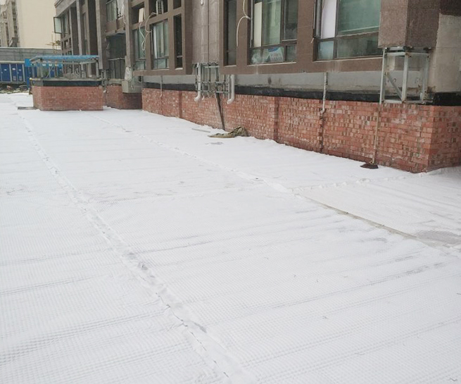 高分子防護(hù)排水異型片自粘土工布卷材是由高密度聚乙烯(HDPE)純白原料,在熔融狀態(tài)下經(jīng)真空吸塑一次成型制成,制造出的單向連續(xù)密閉殼體型凸起的板狀材料,形成一種膜、殼連接,具有立+體排水空間和一定支撐剛度,液體、氣體可以在其內(nèi)流動的防護(hù)排水卷材。